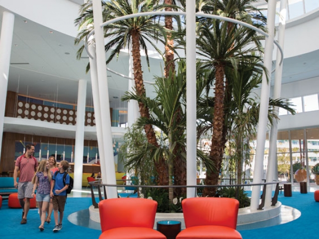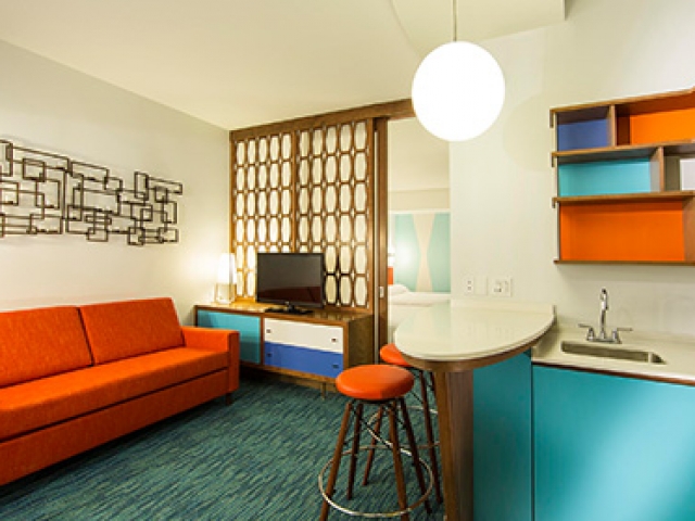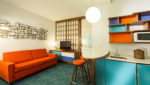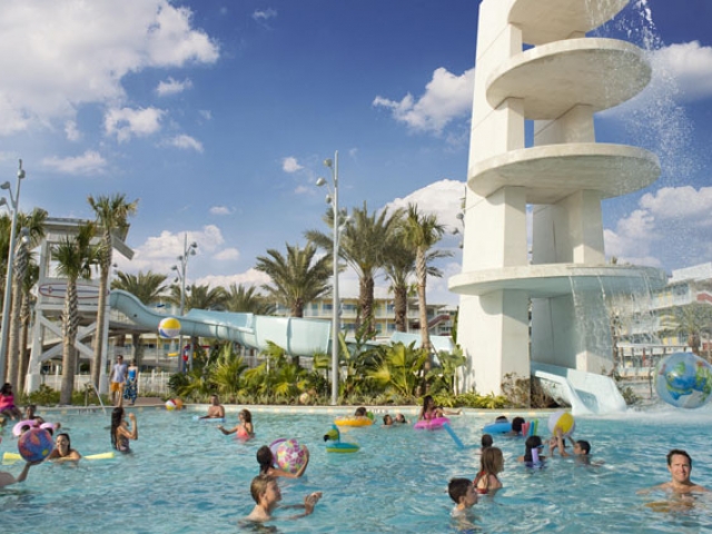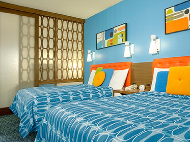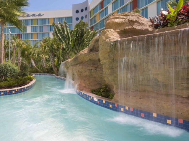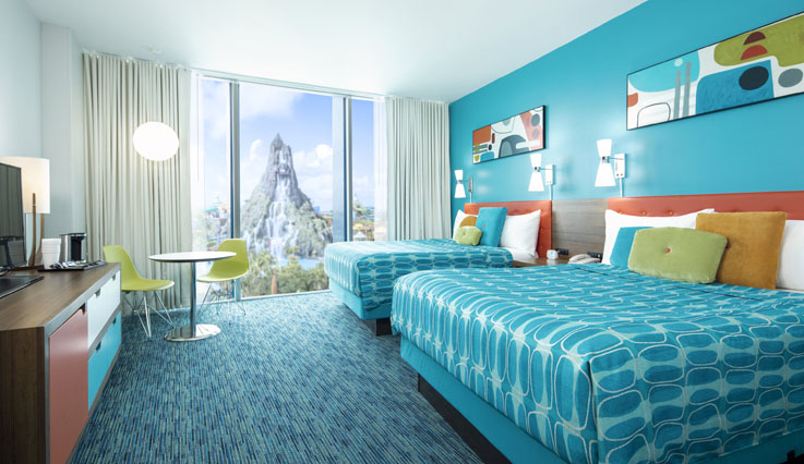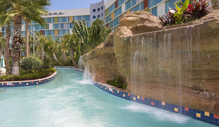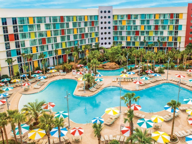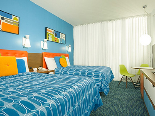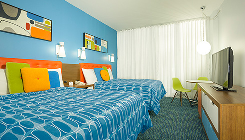 Experience the excitement of Universal Orlando Resort at Universal’s Cabana Bay Beach Resort, with more rooms and more fun for less. This retro-style, prime value hotel features two massive pools, a lazy river, a bowling alley, and family suites that sleep up to six, complete with a kitchenette.
