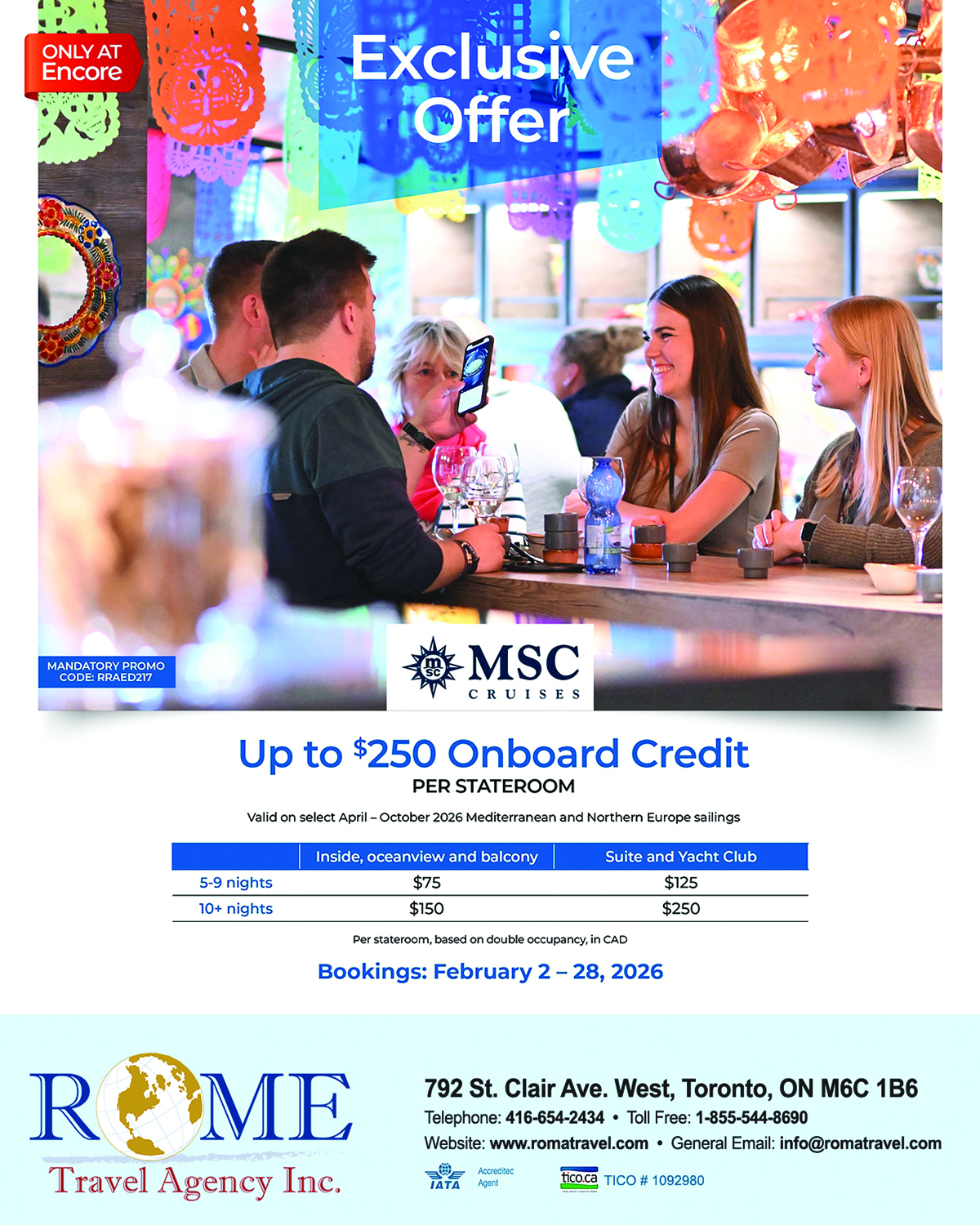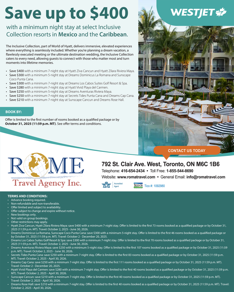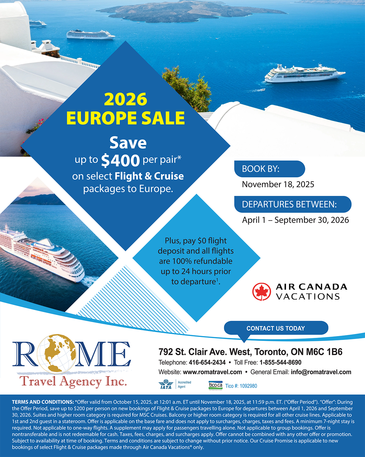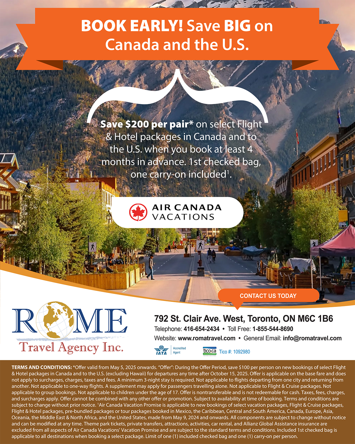 info@romatravel.com | Toll free: 1-855-544-8690 | Tel: 416 654-2434